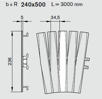 – 帶 R = 250 mm (在軌道寬度為b = 80 mm 或 b = 100 mm 的設備中)或 R = 500 mm 的結構適用于相應的水平彎道
