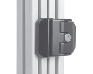 金屬鎖具結構緊湊,在關閉位置有自動上鎖機制。稍用力就能使它關閉。折疊把手結構符合工效學原理,稍拉就可將插銷拉開框架。適用于左開門或右開門。